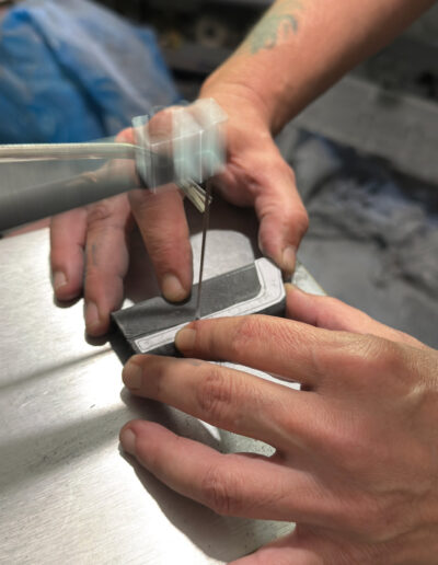 I bastoni da hockey non sono pensati per rinascere: carbonio e aramide sono materiali durissimi da lavorare, e siamo in pochi a farlo.